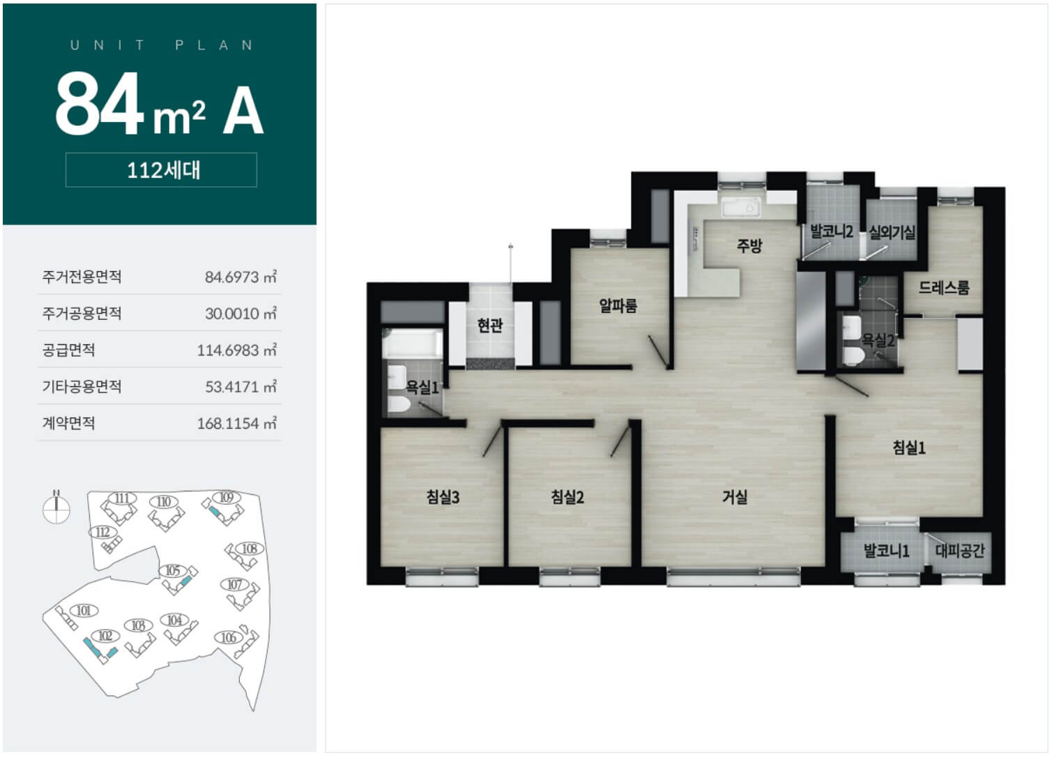 - 84A타입(112세대) : 2.0억/50만