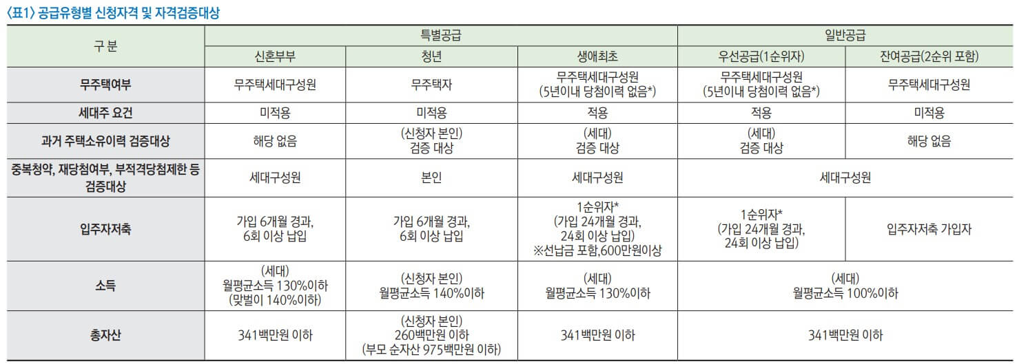 - 지역우선 : 서울 2년이상 거주(50%), 수도권(50%) 우선공급
