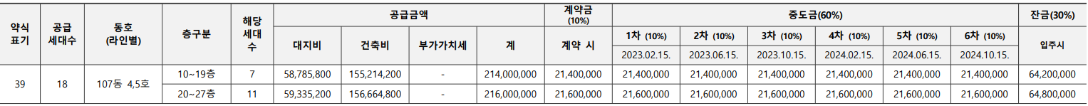 ▶ 중도금 대출 2건 가능(개인별 상이)