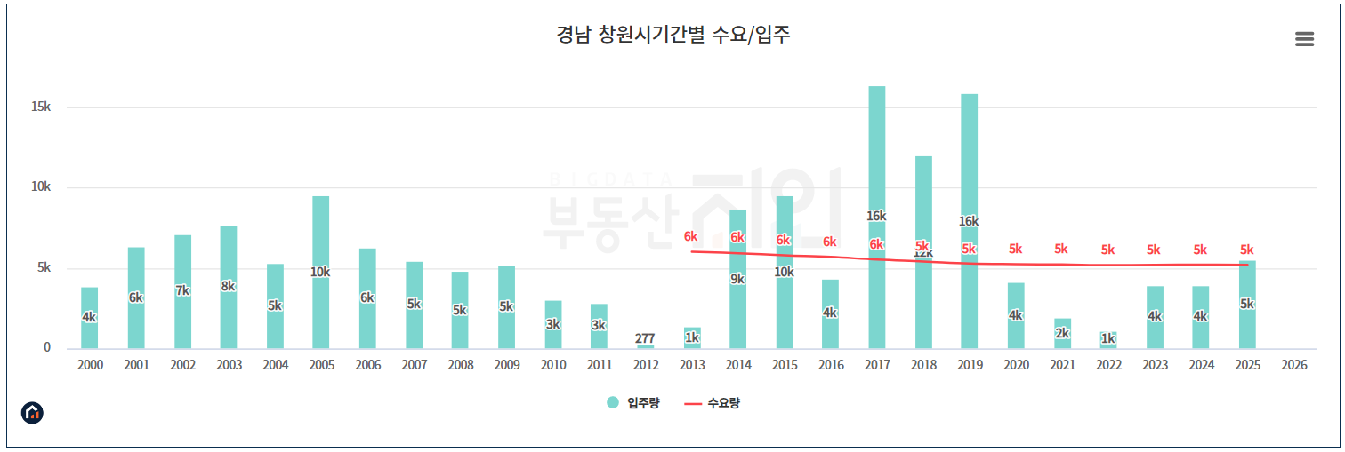 창원처럼 꾸준히 오르는 곳은 흔치 않습니다. 이제는 조정을 받겠다 싶으면, 계속 오르고 있습니다. 그럴만한 것이 그동안 입주물량이 적었기 때문이었고, 그동안 비규제지역으로 청약경쟁률 역시 좋았습니다.