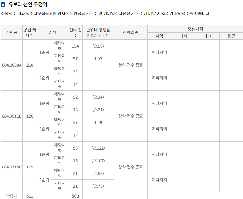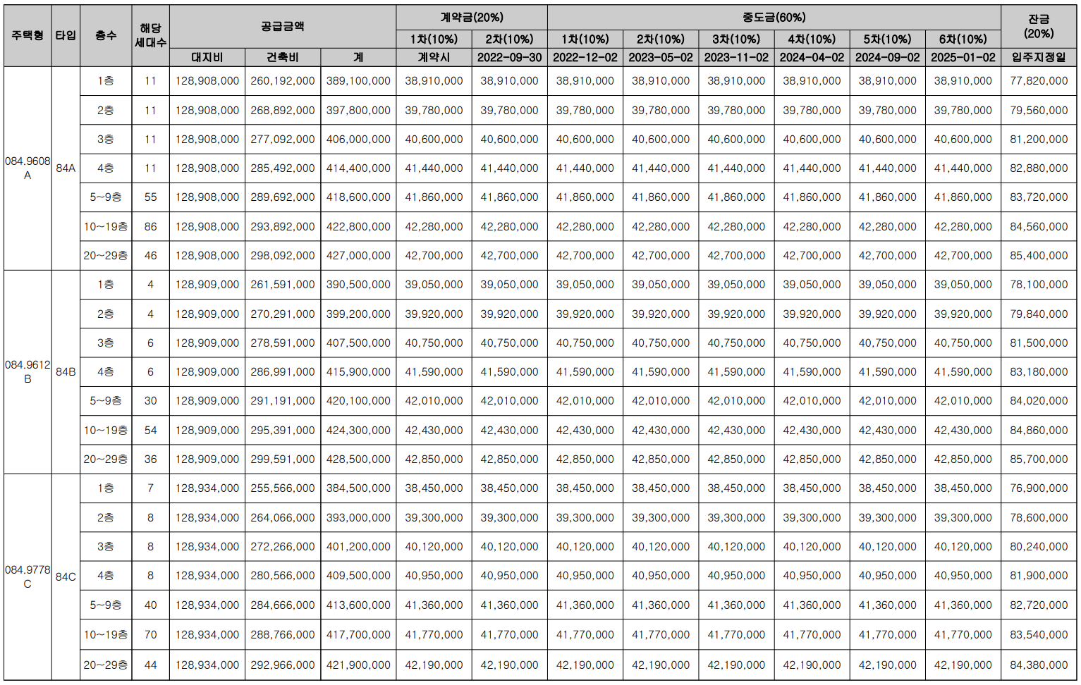 - 유보라 천안 두정역 84㎡ 분양가 : 4.28억
