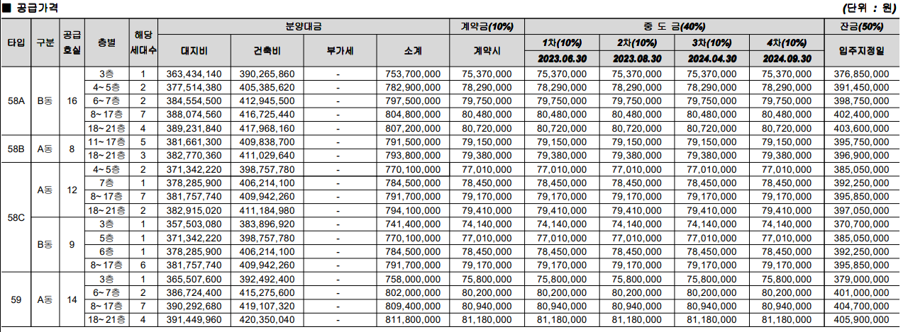 - 58㎡A(16세대) : 8.07억