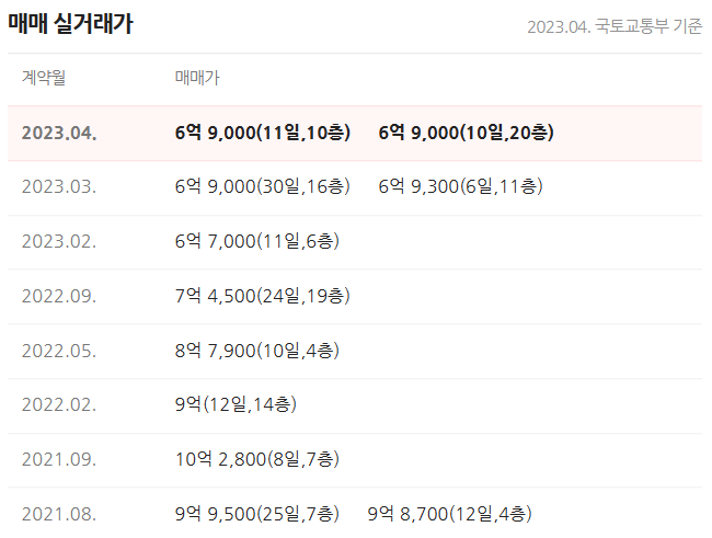 - 72타입(152세대) : 9.08억(기존 10.09억)