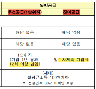 - 당첨자선정(일반공급) : 무주택기간+청약통장납입액 많은 순