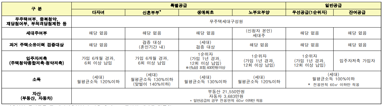 (1) 다자녀 : 통장6개월, 소득 130%, 부동산 2.15억/자동차 3680만원 이하
