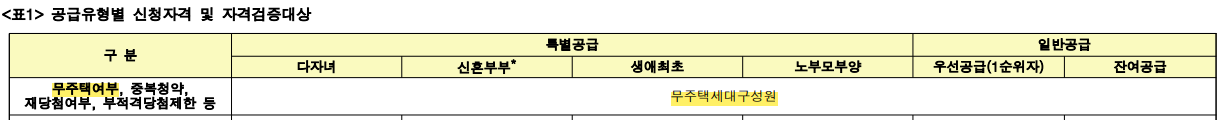 먼저, 1주택자 처분조건은 사라졌습니다. 그리고, 1주택자는 민간분양에서 추첨제 물량에 지원가능한데요. 아쉽지만, 동작구 수방사에는 지원가능한 물량이 없습니다. 일반공급의 잔여공급과 특별공급 모두 무주택 세대주 요건을 기본으로 하고 있습니다. 안타깝지만, 이번에는 무주택자분들에게 기회를 넘겨드려야할 것 같네요.