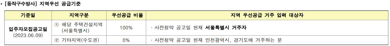 모집공고일(6.9)에 서울거주자이면 된데요. 거주기간이 따로 명시되어있지 않아, 당시에만 서울 거주자이면 됩니다. 아쉽게도 서울거주자가 아니라면, 이번에는 당첨가능성이 없어보입니다. 우선공급의 의미가 서울거주자 먼저 뽑고, 미달이 났을 때, 타 지역에서 뽑기 때문입니다.