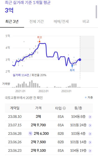 - 84A타입(400세대 중 390세대) : 3.88억