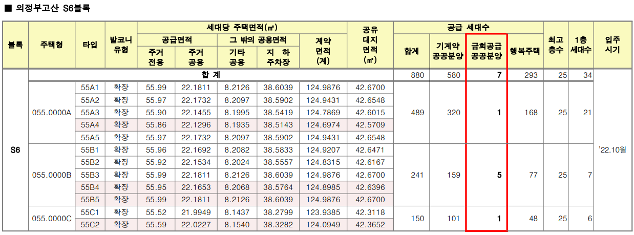 - 의정부 고산 S6 55㎡ 분양가 : 2.43억
