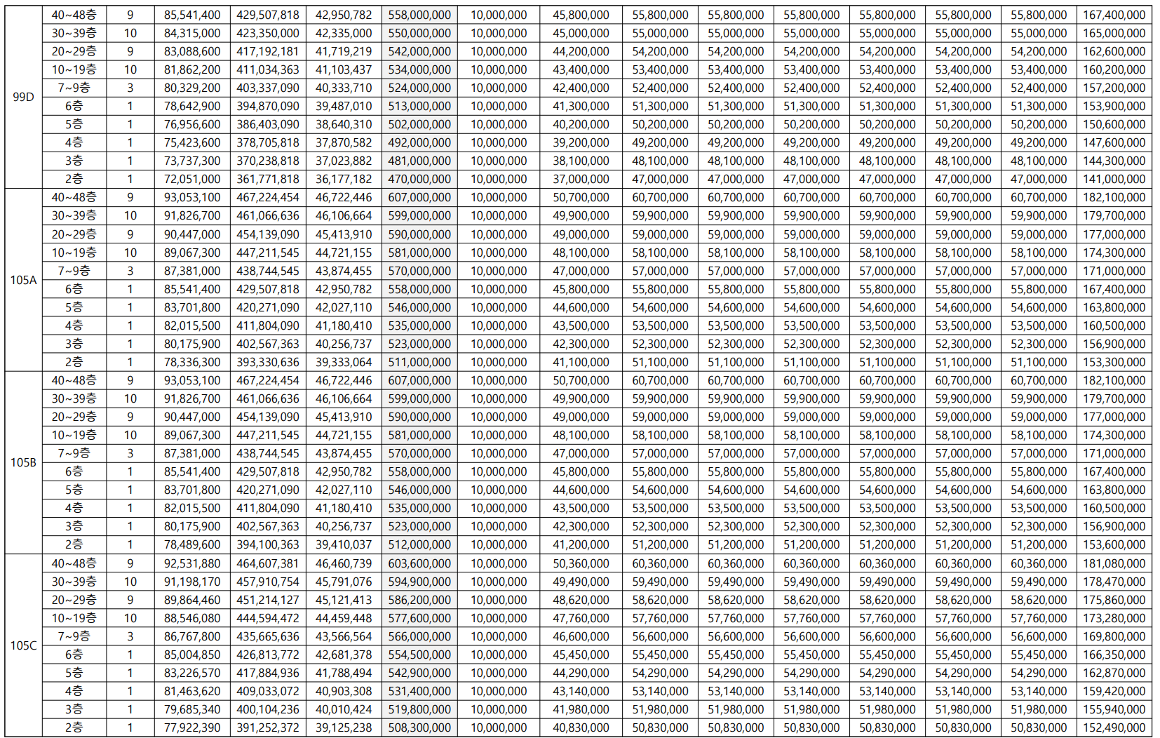 - 99D㎡(46세대) : 5.58억