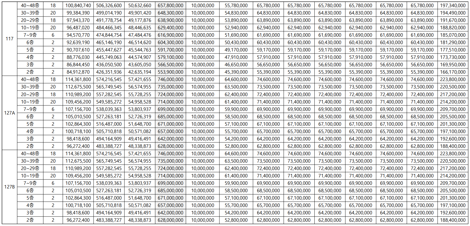 - 127A㎡(92세대) : 7.46억