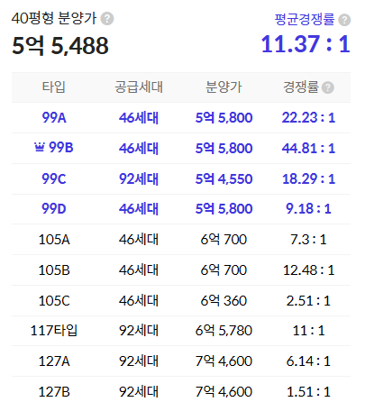 - 99A㎡(46세대) : 5.58억