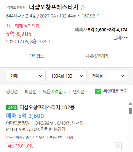 - 더샵 오창 프레스티지는 호가를 확인할 수 있습니다. 안전마진은 없습니다.