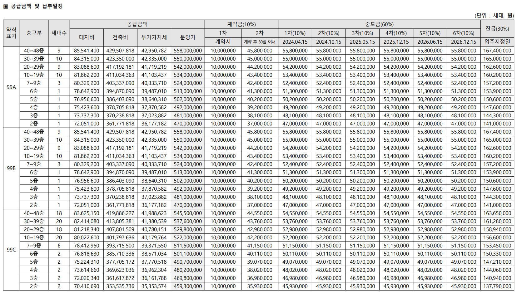 - 99C㎡(92세대) : 5.45억