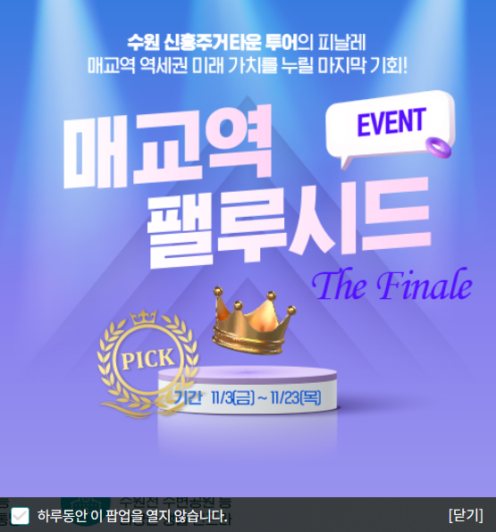 매교역 팰루시드는 비규제지역으로 LTV 70% 대출이 가능하므로, 필요현금은 2.8억+@(발코니, 옵션, 세금)입니다. 매교역 팰루시드는 아래처럼 이벤트가 진행중인데요. 23일까지이니, 얼마남지 않았네요. 이마트 모바일 5만원권 괜찮은데요? 아래 홈페이지를 통해 응모가능합니다. 이상, 부동산 리뷰해주는 남자, 부리남이었습니다.