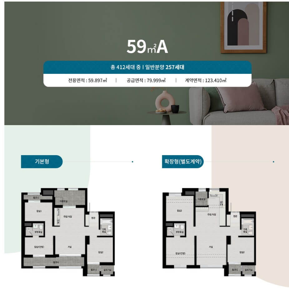 59타입이 주력입니다. 1인가구 생애최초를 노리시는 분들도 계실텐데요. 특별공급 넣고, 일반공급 넣고 두번 지원하는 것만으로도 당첨확률은 배가 됩니다. 게다가, 세대주뿐만 아니라 세대원도 지원가능한 것 아시죠? 특별공급은 안되지만, 일반공급은 세대원과 세대주 모두 지원가능합니다. 하지만, 모집공고일까지 예치금이 채워져있어야겠죠? 또, 많이 놓치는 것이 통장납입기간입니다. 적어도 1년이상 납입했어야 지원가능합니다. 이 글을 읽고, 갑자기 통장 만들어서 예치금 넣어도 지원은 불가능합니다. 이렇게까지 준비해야하나 싶지만, 59타입은 그나마 도전해볼만한 분양가입니다. 그래서, 늘 경쟁률이 높았습니다. 이것을 두고, 뉴스에서는 '이제는 소형이다', '소형평형 전성시대'라고 하지만, 실상은 이제 84타입은 갈아타기용입니다. 생애최초로 84타입을 도전하기에는 분양가가 너무 무거워졌습니다.