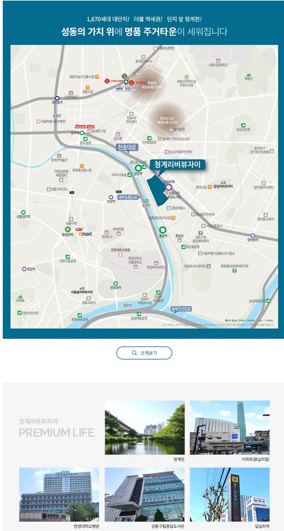 청계리버뷰 자이는 평균경쟁률 148:1을 기록한 청계SK VIEW와 인접한 단지입니다. 청계SK VIEW가 2호선 신답역 초역세권이었다면, 청계리버뷰 자이는 5호선 답십리역 초역세권입니다. 게다가, 396세대인 청계SK VIEW와 달리 청계리뷰자이는 1670세대 대단지입니다. 여전히 학교와의 거리는 아쉽지만, 단지 앞에 청계천이 흐르고, 강남과 연결되는 2호선과 광화문으로 연결되는 5호선 더블역세권이라는 장점은 확실합니다. 그럼, 시작합니다.
