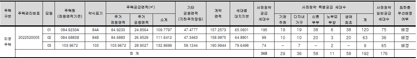 총 459세대 중 사전청약 368세대
