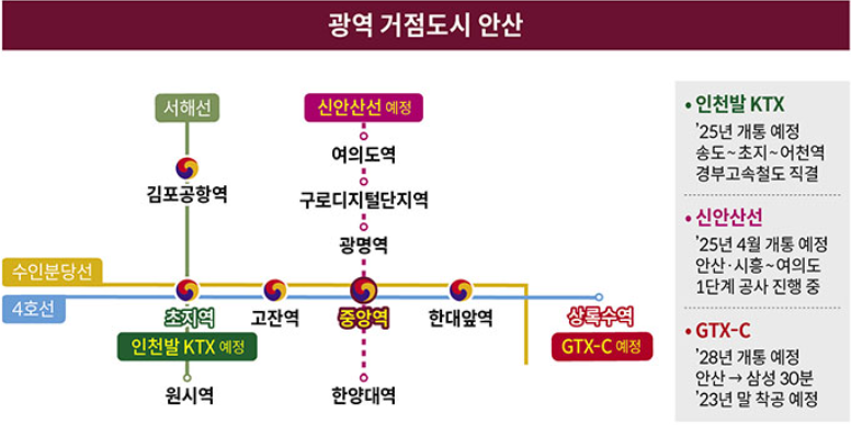 안산 롯데캐슬 시그니쳐로 정말 오랜만에 안산 분양을 소개드립니다. 아래 입주물량을 보아도 안산은 그동안 분양이 적었던 곳입니다. 반면, 서해선, 신안산선,GTX-C, 인천발 KTX 등 교통호재가 많은데요. 특히, 중앙역은 2025년 신안산선 개통으로 여의도까지 이동이 획기적으로 변화할 곳입니다.(아래 입지환경 참고). 안산 롯데캐슬 시그니쳐는 초역세권은 아니지만, 초등학교가 단지 길건너에 있고, 고려대 안산병원, 안산시외버스터미널, 롯데백화점을 모두 가깝게 이용할 수 있습니다. 이런 단지에서 아쉬운 점이 있는데요. 아래에서 더 이어가겠습니다.