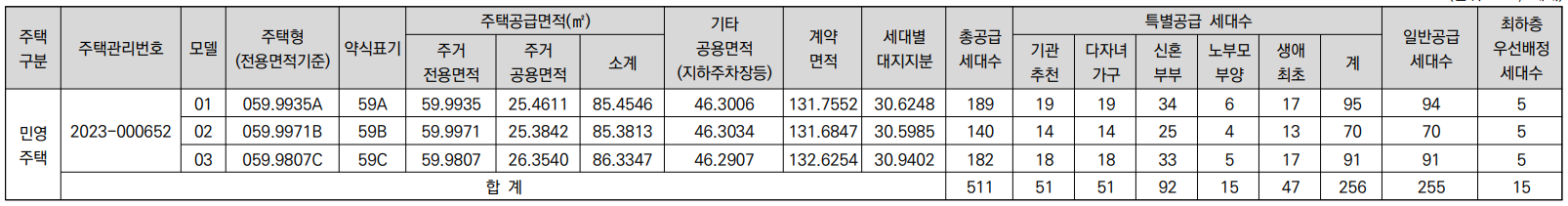 - 59C타입(182세대) : 6.28억