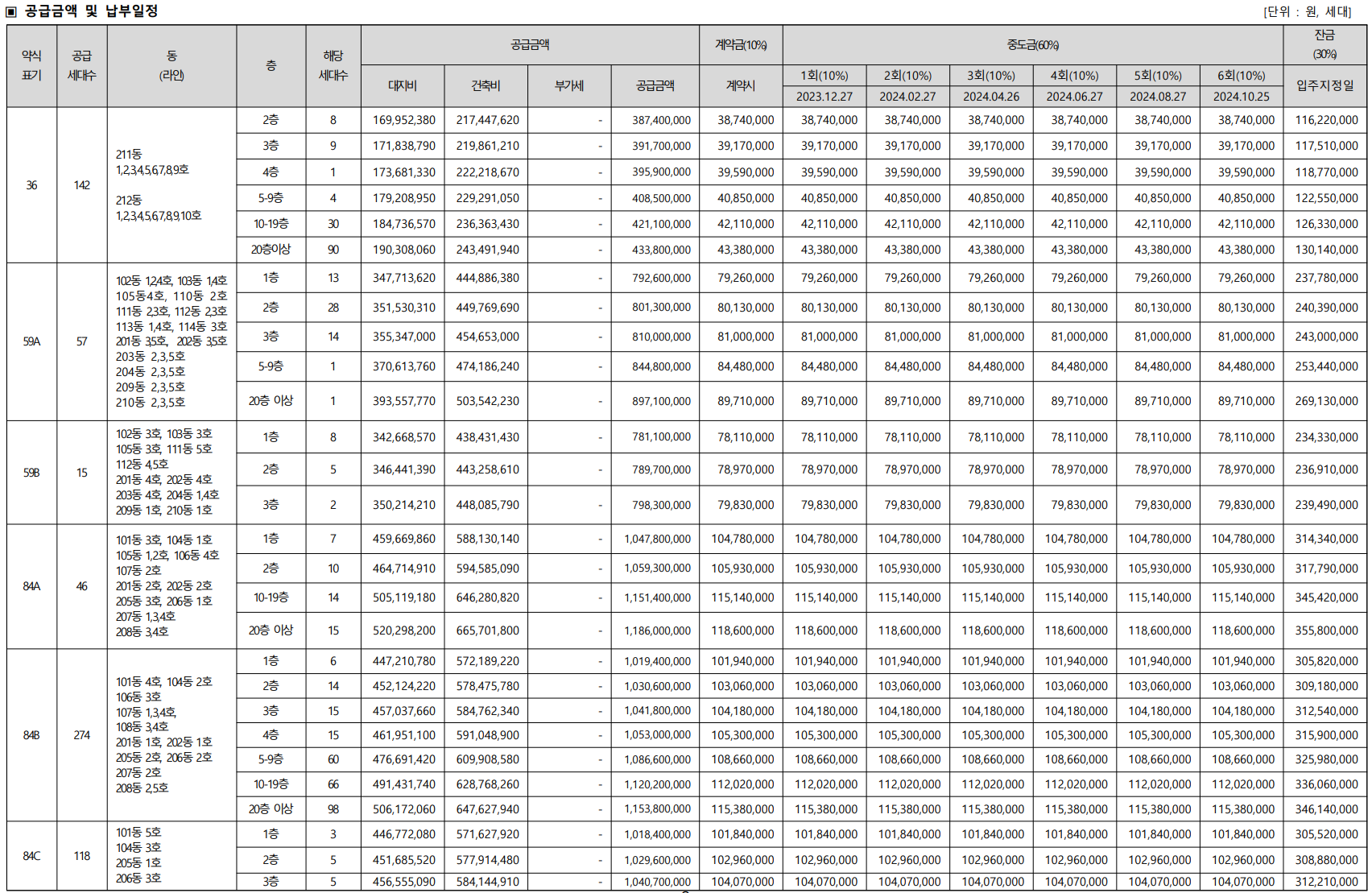트리우스 광명은 2024년 10월말에 전매가 풀리고, 2024년 11월 준공입니다. 전매가 불가능한 것은 아니지만, 투자자에게는 부담스럽습니다. 그나마 최근 계약금이 5%로 변경되면서, 84타입 기준으로 계약금은 1.18억에서 5930만원으로 부담이 훅 줄어듭니다.