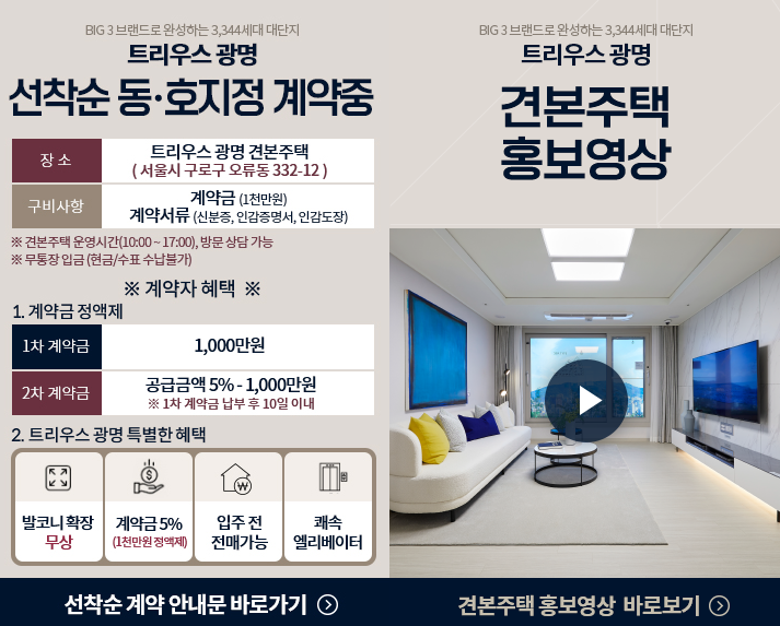 상시 줍줍! 트리우스 광명 분양가, 평면도, 중도금대출