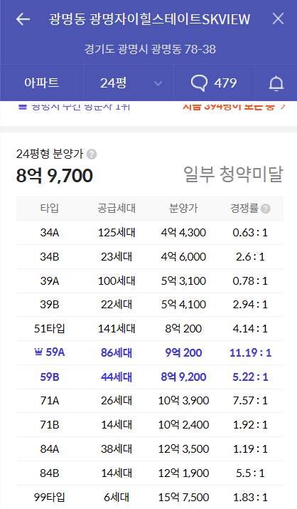 - 트리우스 광명 84㎡ 분양가 : 11.86억