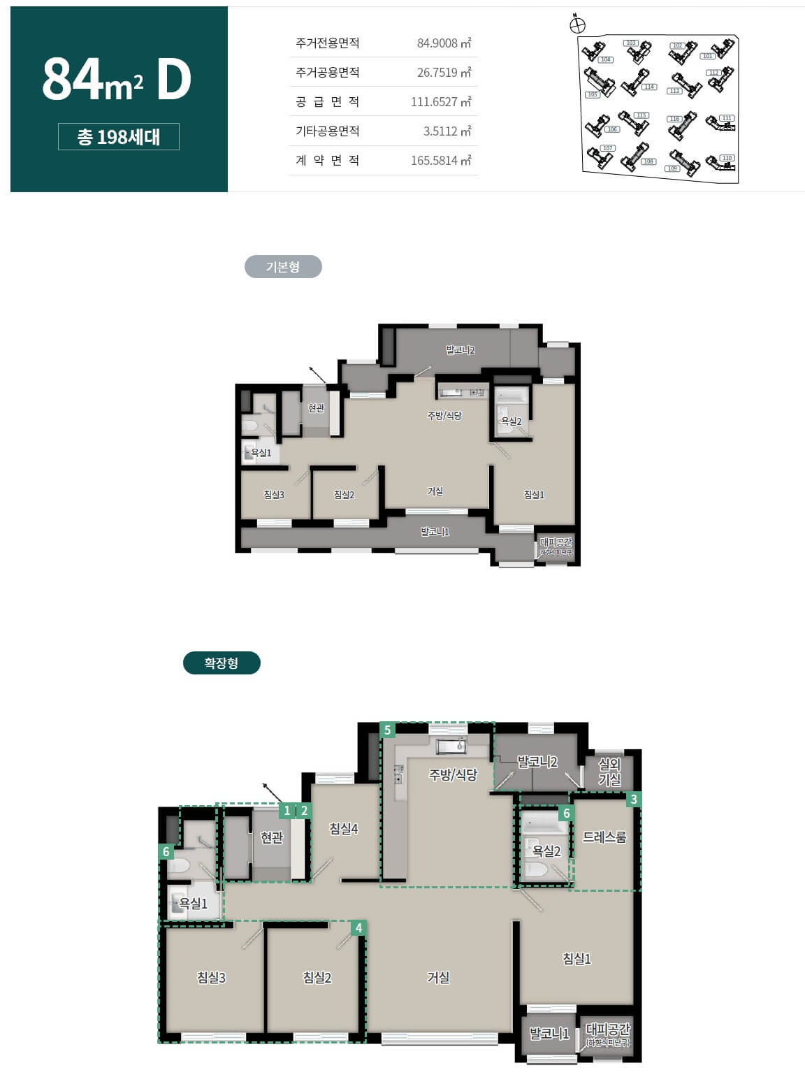 2) 발코니 확장 및 옵션 계약금 : 100만원 정액제