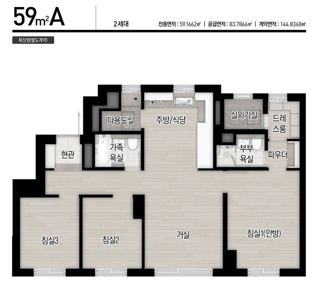 - 추가 : 평면도, 단지배치도, 커뮤니티, 1주택자 추첨물량