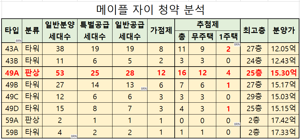 - 메이플자이 49㎡ 분양가 : 15.30억