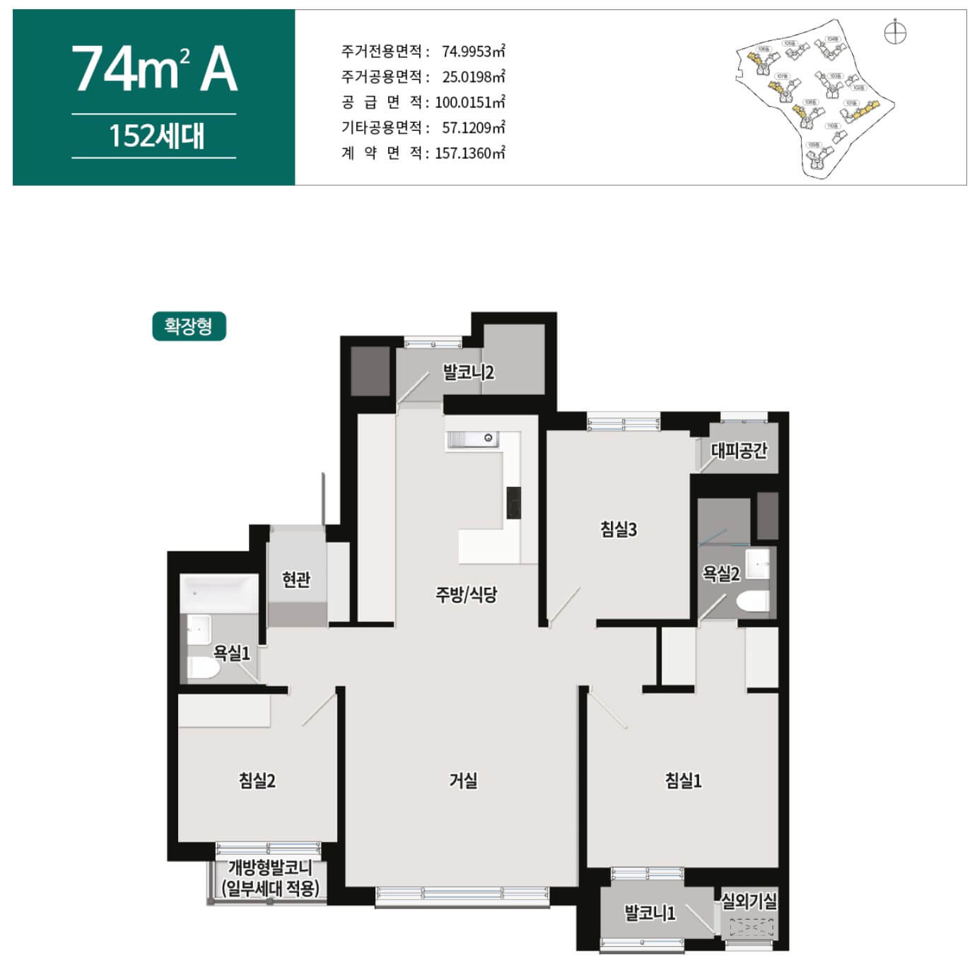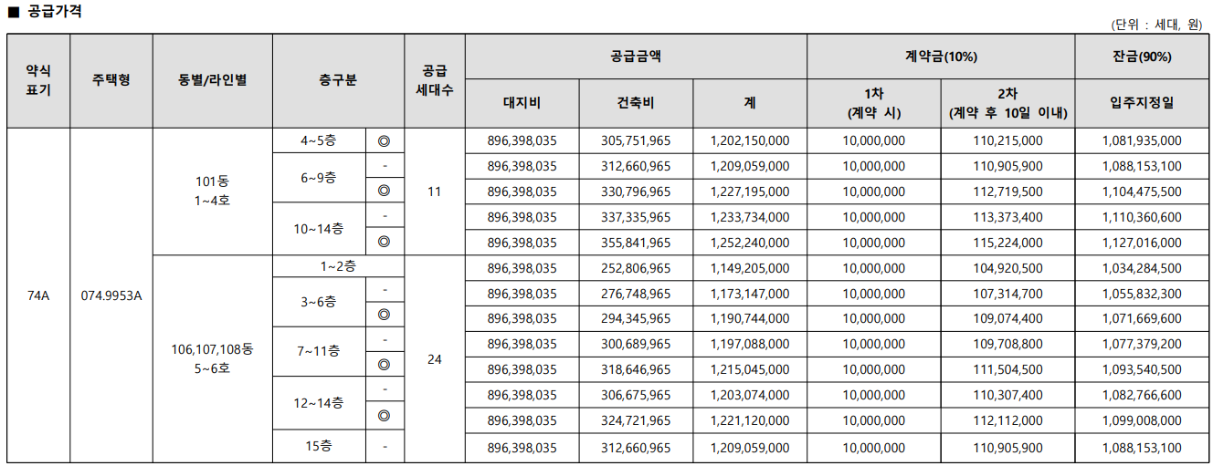 - 74A㎡(152세대 중 35세대) : 12.64억
