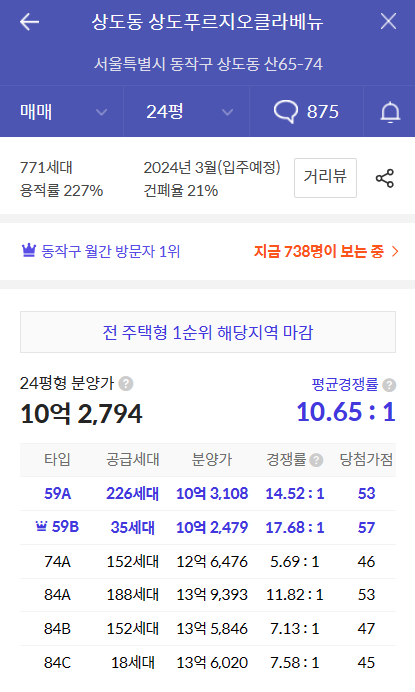 물론, 이외에도 잔여세대를 100% 신뢰할 수는 없습니다. 그동안 무순위청약을 다루면서, 배신감을 느낄 때도 있었는데요. 잔여세대가 많지 않은데, 동호수만 변경하면서 공급하는 단지들도 있습니다. 아쉽게도 상도 푸르지오 클라베뉴는 잔여세대의 동호수는 공개되고 있지 않아, 이 부분에 대한 검증은 부족합니다.