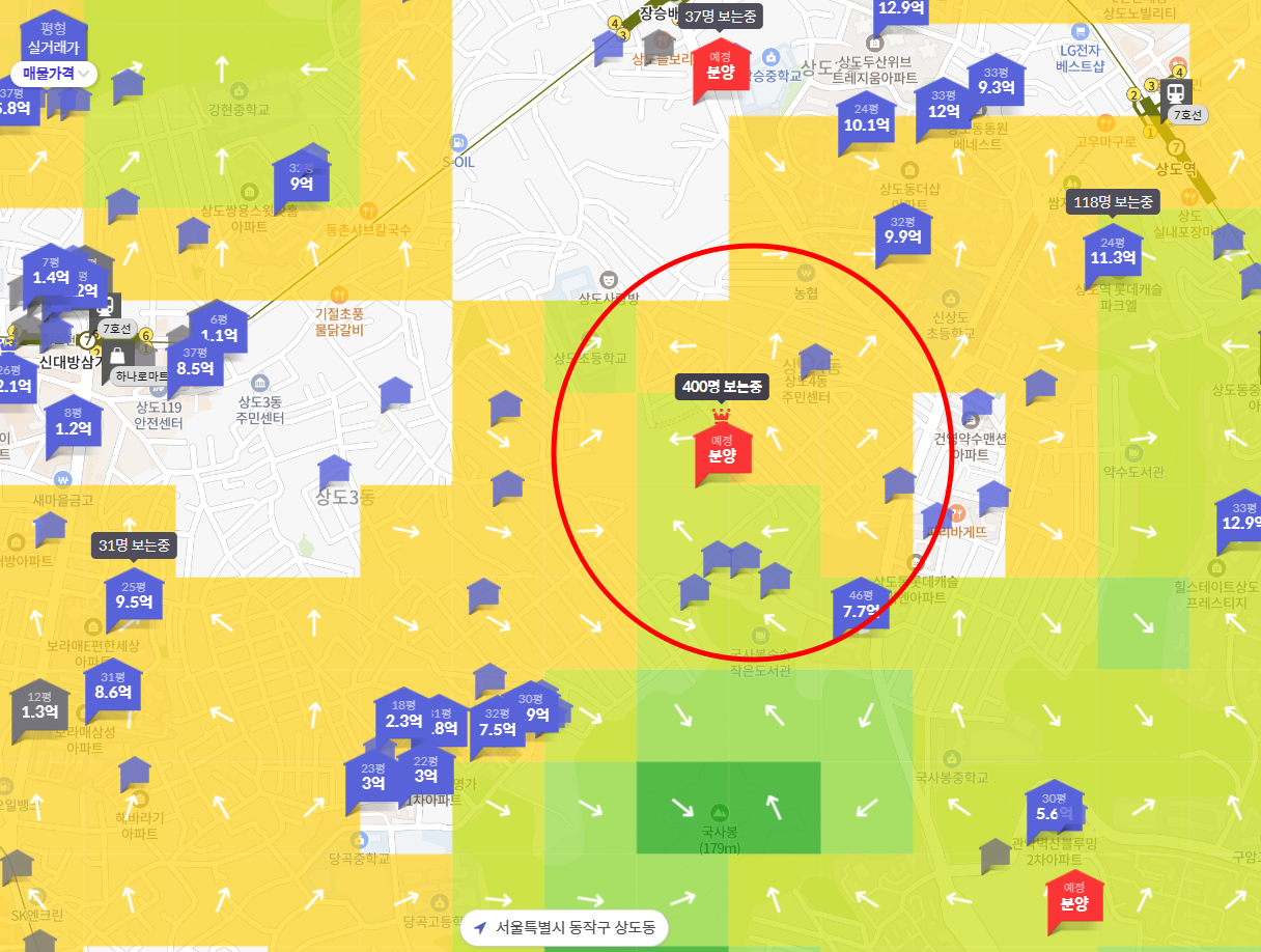 - 상도더샵1차(2007년 9월 준공, 1122세대)를 비교단지로 잡았습니다. 초등학교와 중학교 모두 가깝고, 역과의 거리도 준수합니다. 비록 연식차이는 있지만, 입지는 상도 푸르지오 클라베뉴를 압도합니다. 이를 감안한 비교가치는 13.88억으로 안전마진은 없습니다.