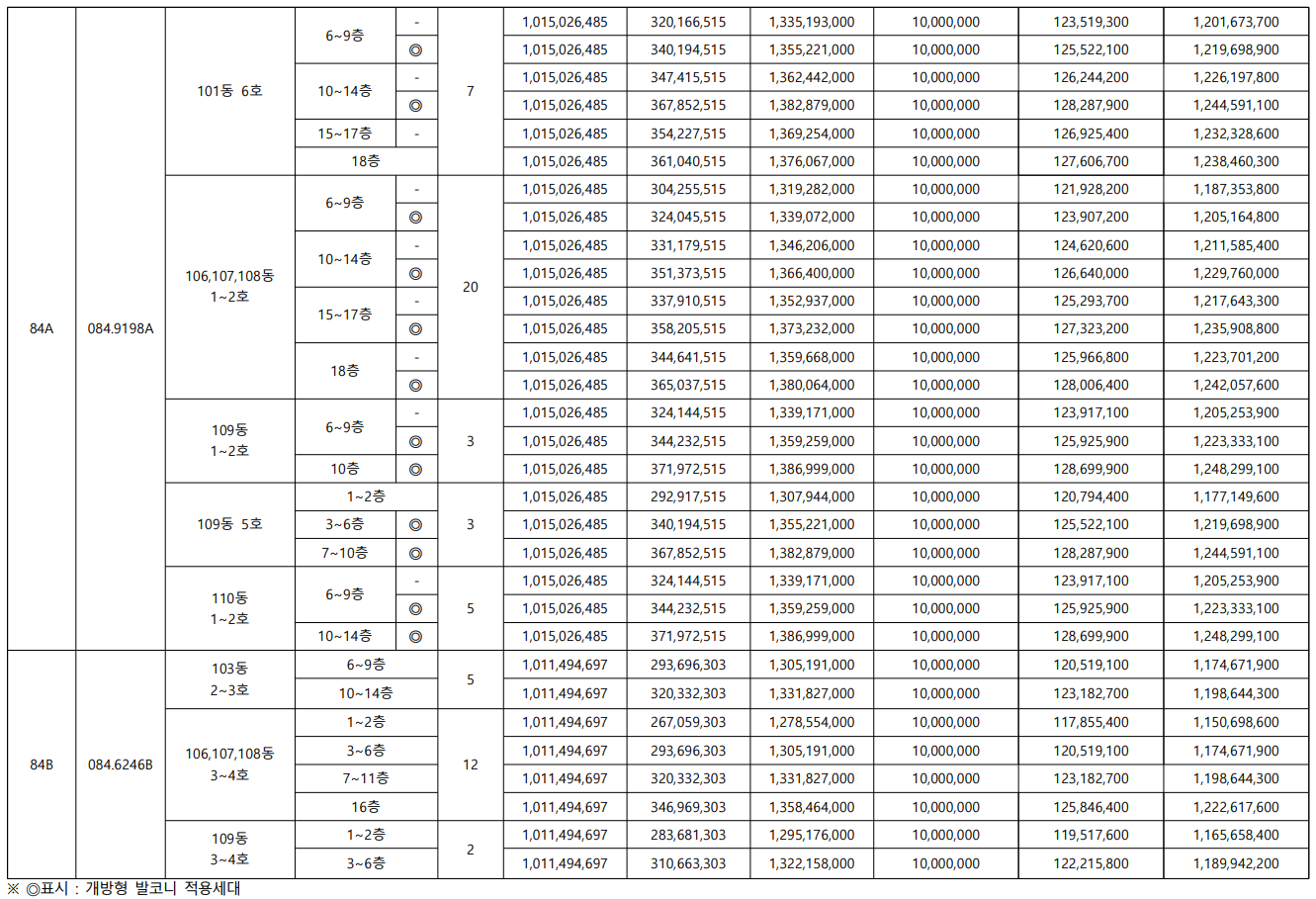 - 84A㎡(188세대 중 38세대) : 13.93억