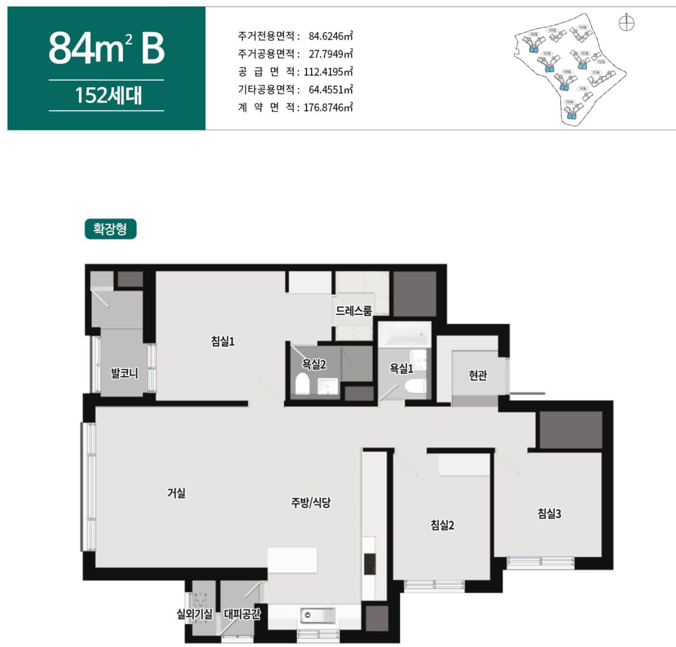 - 84B㎡(152세대 중 19세대) : 13.58억