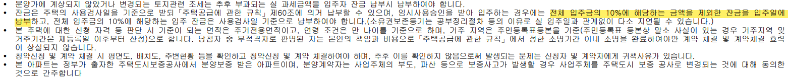반면, 임시사용승인을 받은 경우에는 총분양가의 10%는 준공이 났을 때 납부할 수 있습니다. 즉, 총 분양가의 90%만 잔금때 내면 되겠습니다.