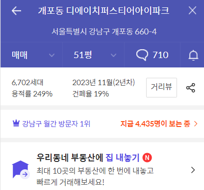 - 개포동 디에이치퍼스티어 아이파크 132A㎡ 호가 : 45.7억(고층/12층)