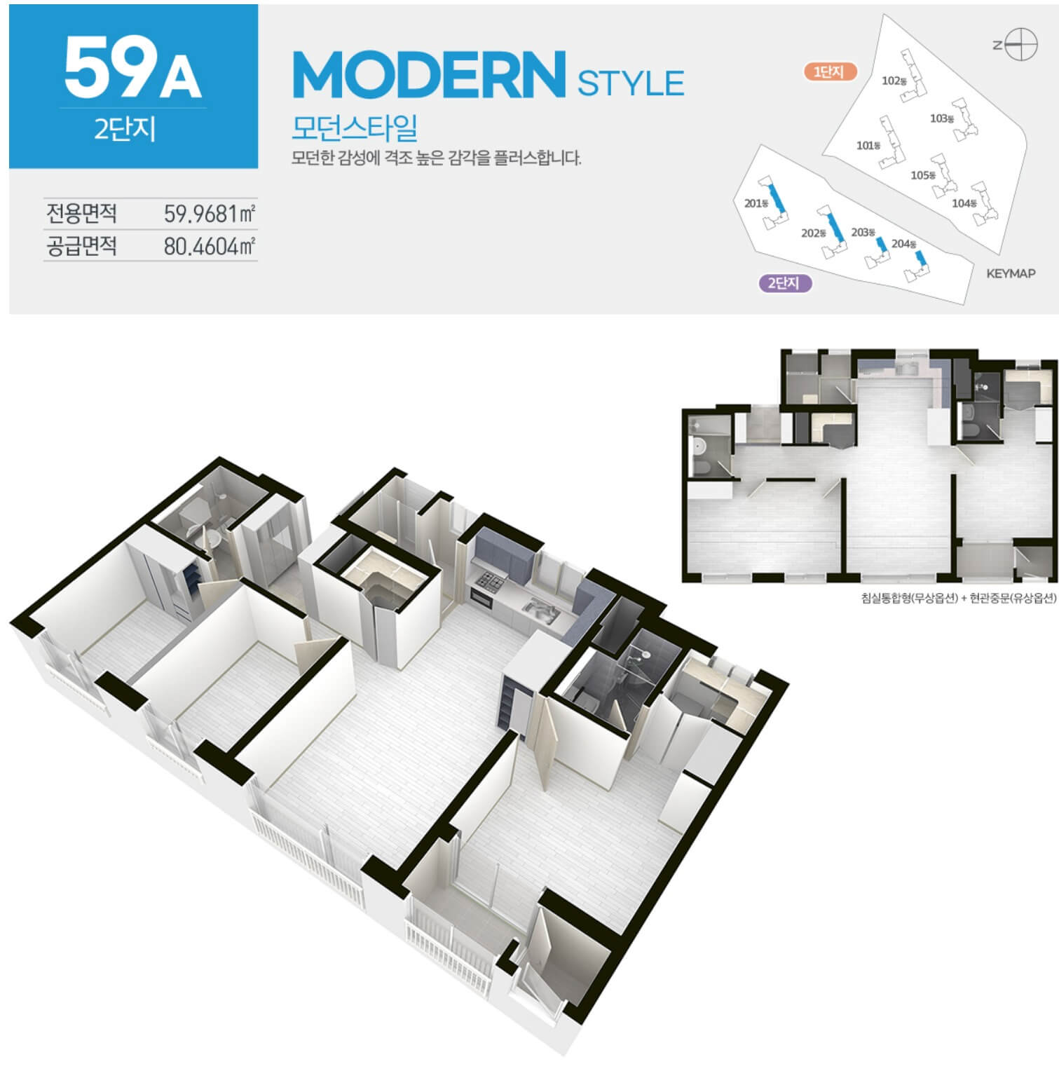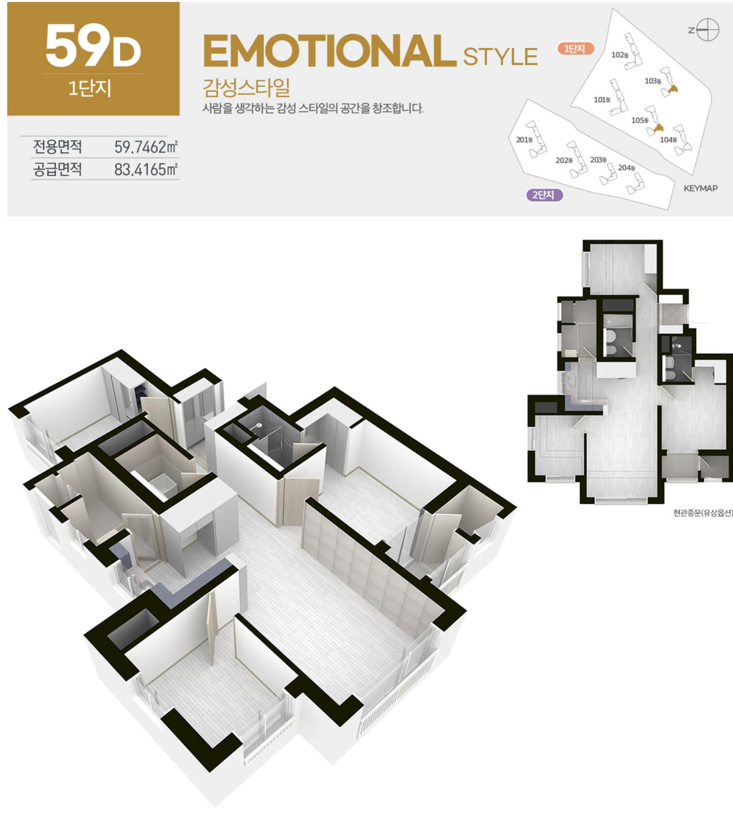 - 59D타입(4세대) : 4.32억(최초 4.09억)