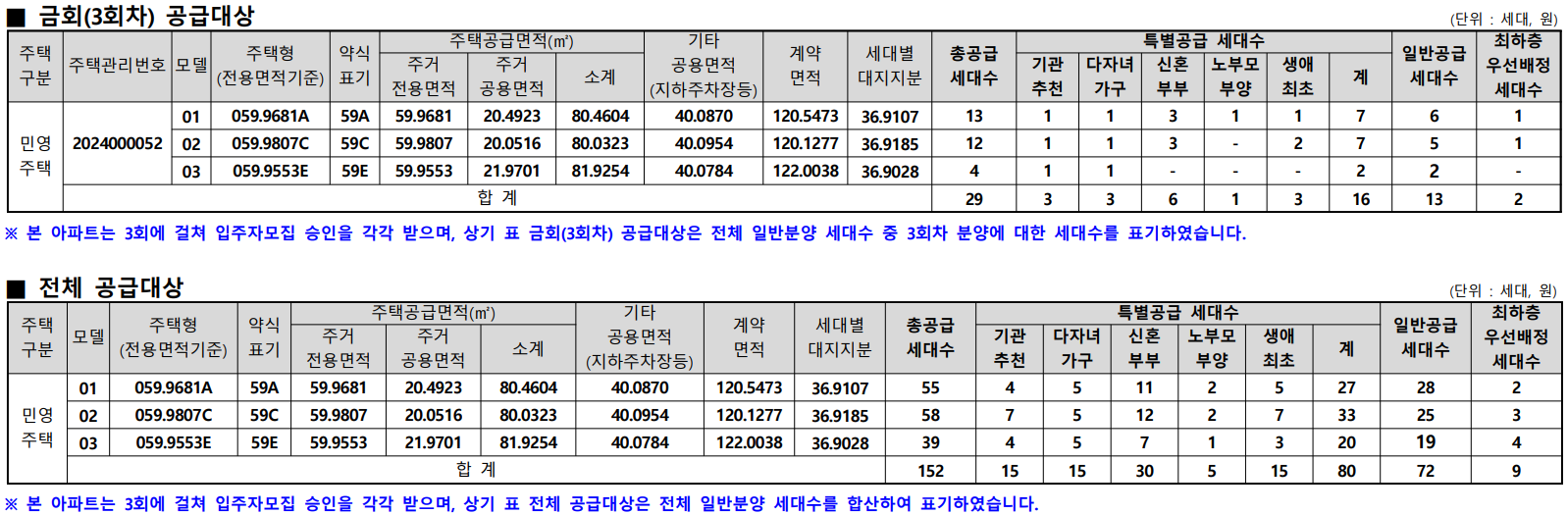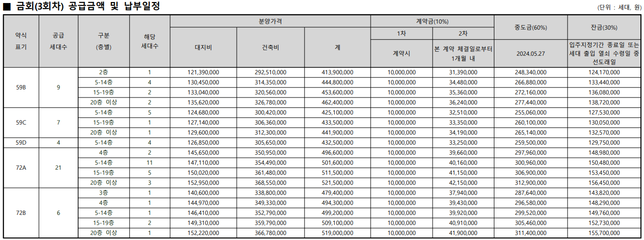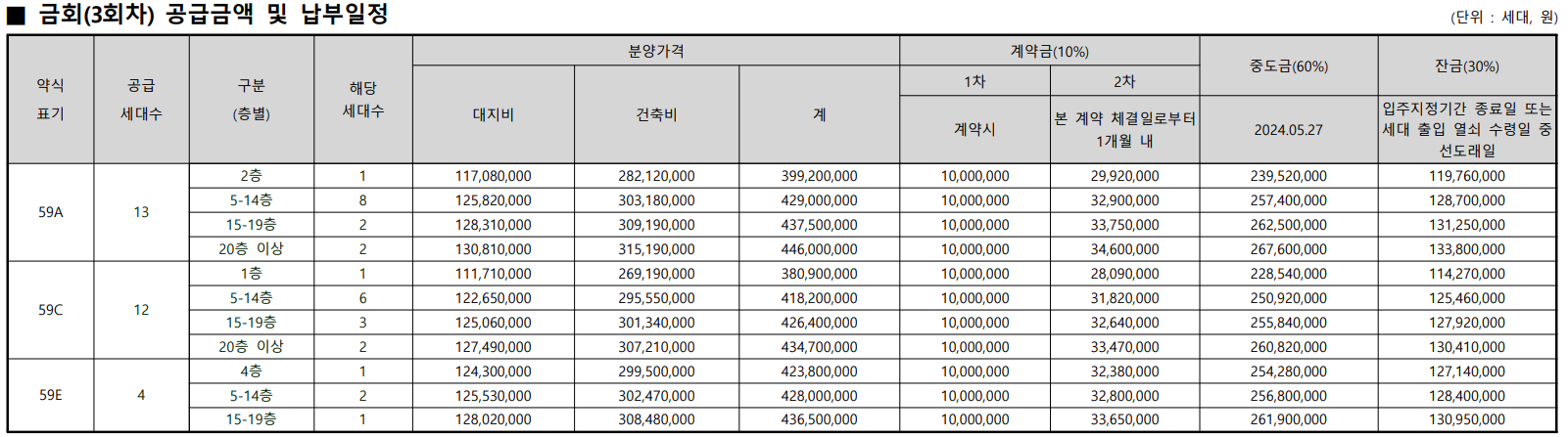 - 59B타입(9세대) : 4.62억(최초 4.21억)