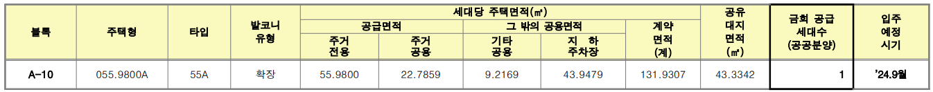 - 55A㎡(438세대 중 1세대, 1010동 102호) : 5.30억