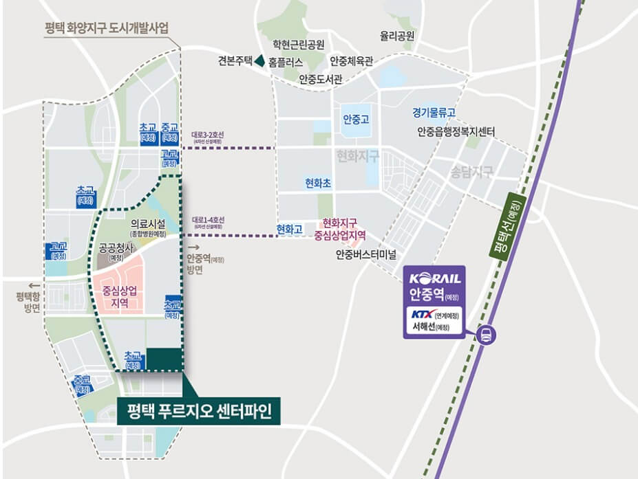 평택 푸르지오 센터파인에서는 '화양'이 빠졌습니다. 초기에는 서평택과 화양을 강조하며 비규제지역으로 인기를 끌었지만, 이제는 미분양의 오명으로 '화양'을 감추네요. 화양지구는 서평택의 84만평에 2만세대가 계획되어 있고, 이제 대부분의 단지들이 분양을 끝냈습니다. 완성된 화양지구는 어떨 지 조금더 살펴보겠습니다.