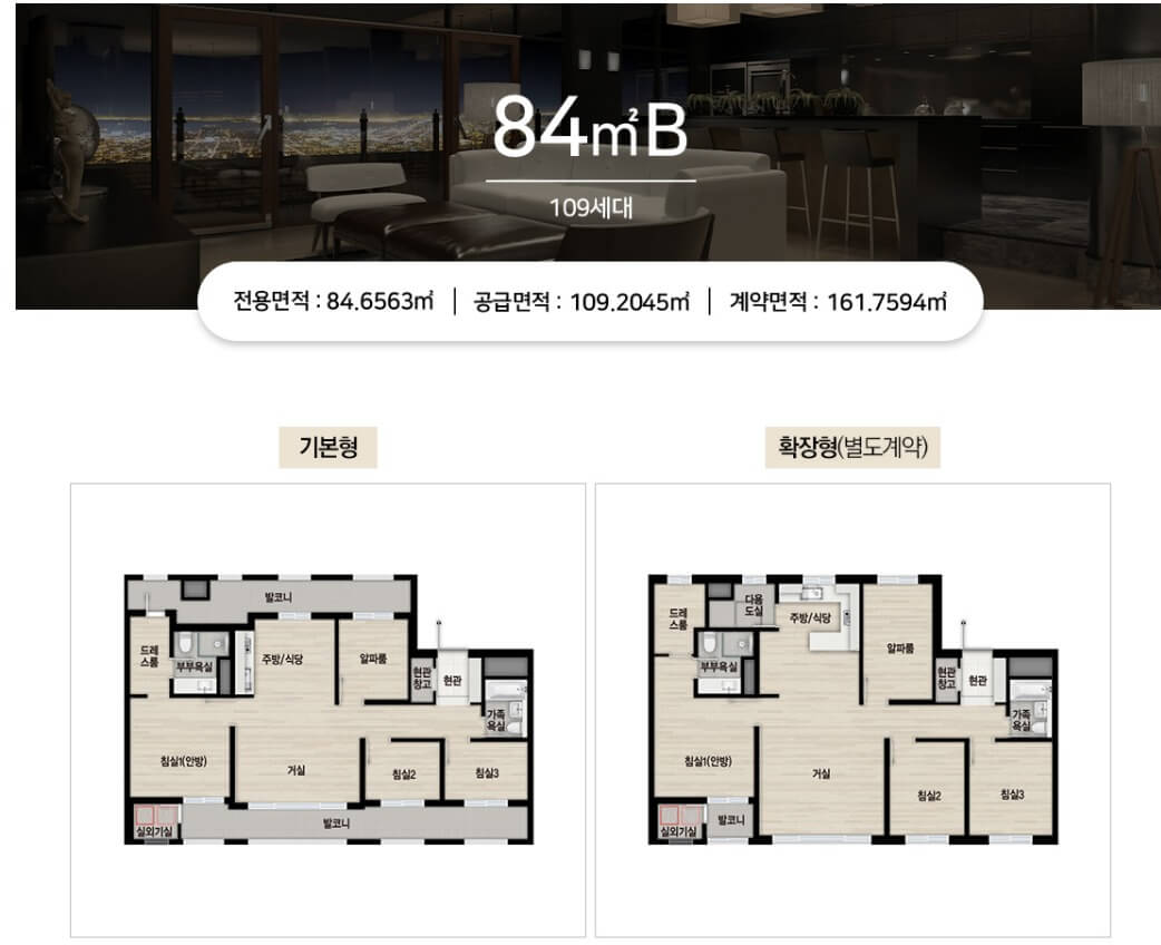 - 84B타입(109세대) : 8.63억