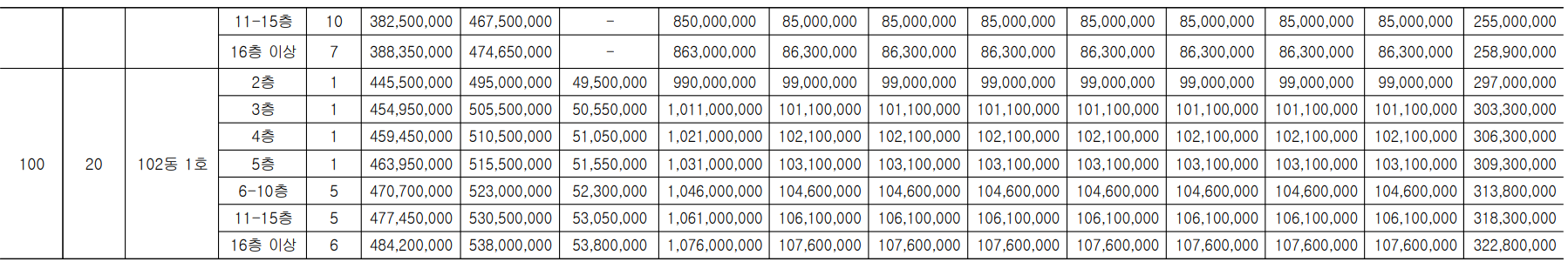 - 100타입(20세대) : 10.76억