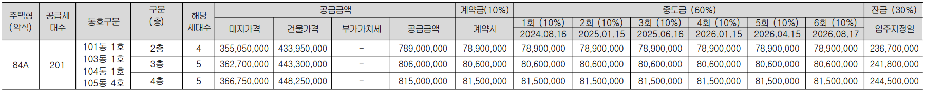 - 84A타입(201세대) : 8.63억