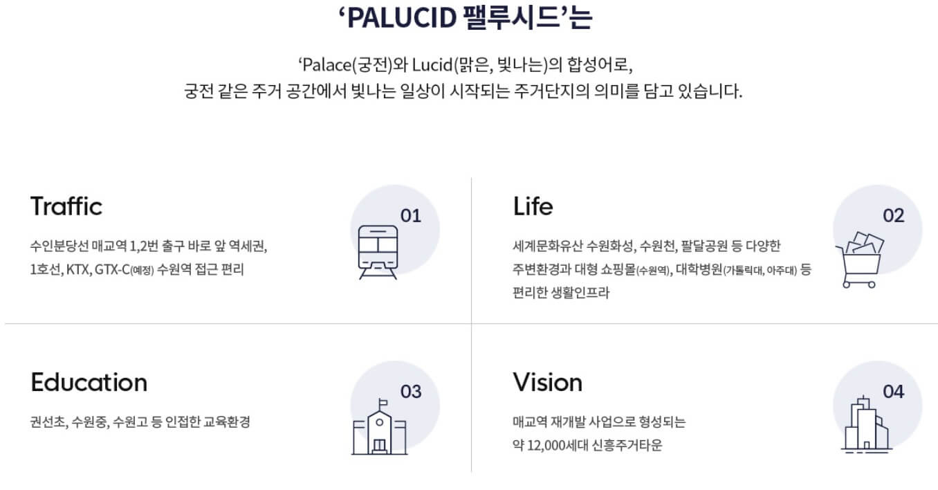 매교역 팰루시드는 대장단지답게 콧대높은 분양가를 제시했던 것은 맞습니다. 다만, 주변단지들이 대부분 입주하였고, 매교역 초역세권의 알짜 입지에 마지막으로 분양하는 단지라 수요는 충분해보입니다.