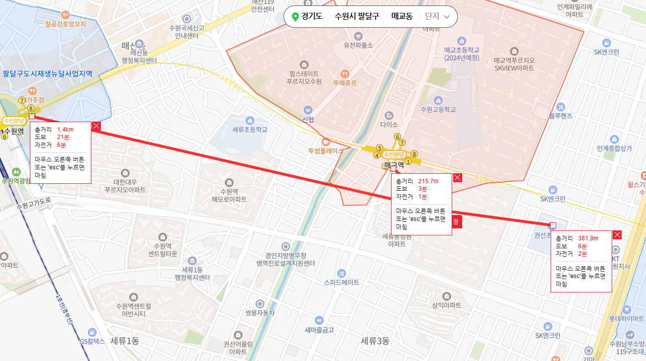 실수요자분들에게는 매교역 팰루시드가 완판되기 전에 매교역푸르지오SK뷰 매수를 추천드렸습니다. 위에서 살펴보았듯이 동일하게 매교역과 가깝고 연식차이도 크지 않은데, 세대수도 더 많고, 초중고품아입니다. 현재는 실거래가 변동이 크지만, 매교역 팰루시드의 분양가보다는 안전마진이 있어보입니다. 더불어 매교역 주변에 대한 선입견 글들이 보이는데요. 나홀로 단지도 아니고, 신축 브랜드 대단지가 군을 이루는 만큼, 인식이 달라질 곳입니다. 더불어 GTX-C 수원역과도 가까워 강남출퇴근 주거수요도 충분히 유입이 가능합니다.
