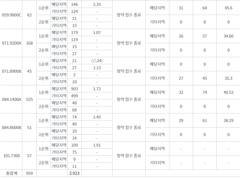 다른 타입 정보는 전혀없지만, 가장 많이 남은 84A 타입 기준으로 305개에서 310개 정도 남은 것으로 보입니다.