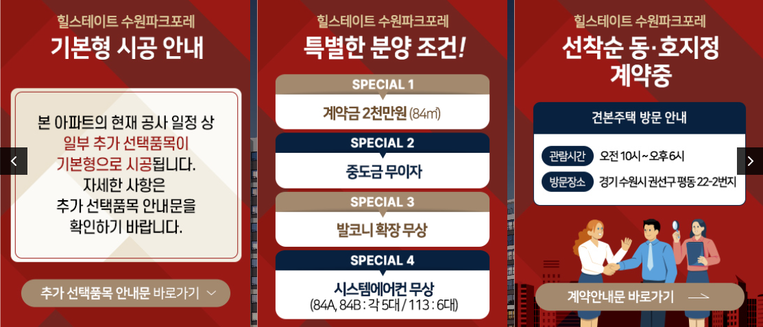 힐스테이트 수원파크포레는 이름에서 일단, 쎄했습니다. '파크', '포레' 물론, 좋은 단어입니다. 하지만, 각각 나왔을 때가 좋습니다. 파크+포레=외지 중 외지라는 뜻이니까요. 개인적으로는 '에듀+포레'나, '메트로+파크', 이런 조합이 좋습니다. 일단, 입지가 별로인데, 분양가까지 높았습니다. 결국, 계약조건 변경 들어갑니다. 어떻게 변했는지 살펴보시죠.