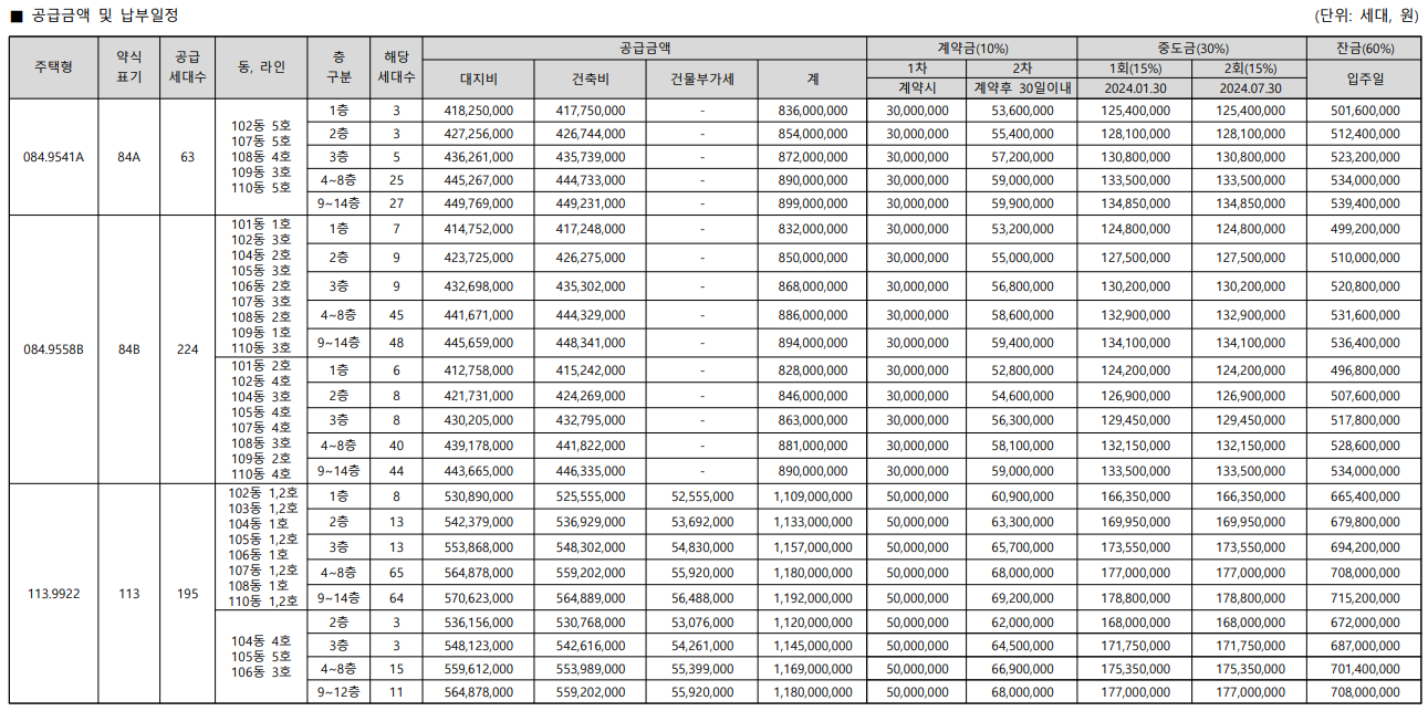 - 84B㎡(224세대) : 8.94억