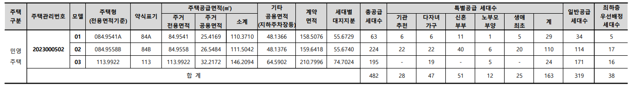 총 482세대 일반분양